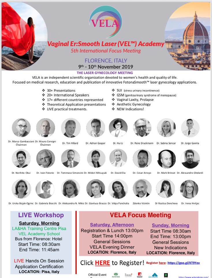 2019年11月 ヨーロッパで開催されたVEL™ACADEMY 5Th International Focus Meeting Florence ITALYにてインティマレーザーに関する発表を行いました。