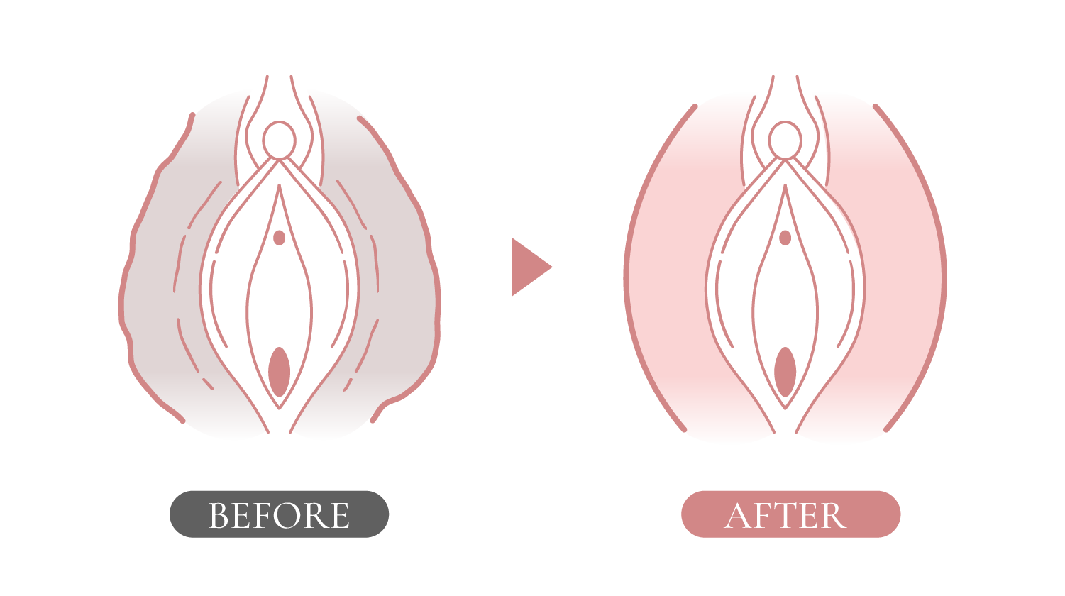 大陰唇の大きさが気になり、ピッタリしたパンツ、スパッツなどが履けない、大陰唇の膨らみが気になってパートナーとの性交にためらいがあるなどのお悩みを解消することが出来ます。